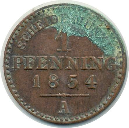 ALLEMAGNE PRUSSE 1 PFENNIG 1854 A TB+ oxydée (W451)