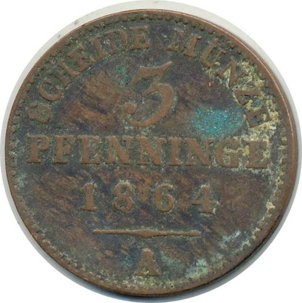 ALLEMAGNE PRUSSE 3 PFENNIG 1864 A TTB Oxydation (W482)