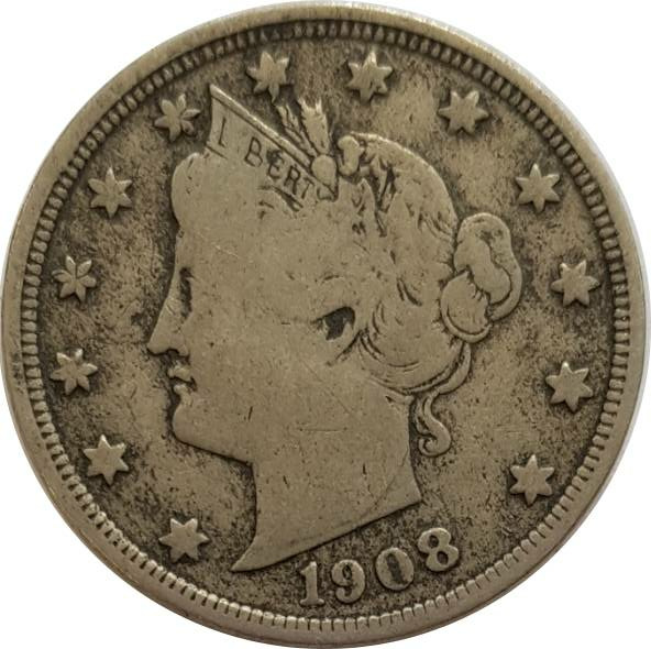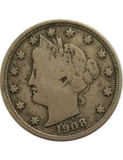 AMERIQUE ( U.S.A ) 5 CENTS 1908 LIBERTY NICKEL TB+