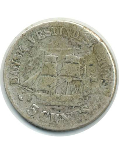 DANISH WEST INDIES 5 CENTS 1859 FREDERIK VII du DANMARK TB (W65)