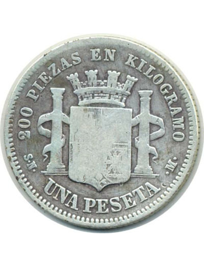 ESPAGNE 1 PESETA 1870 SNM ESPANA TB (W653)
