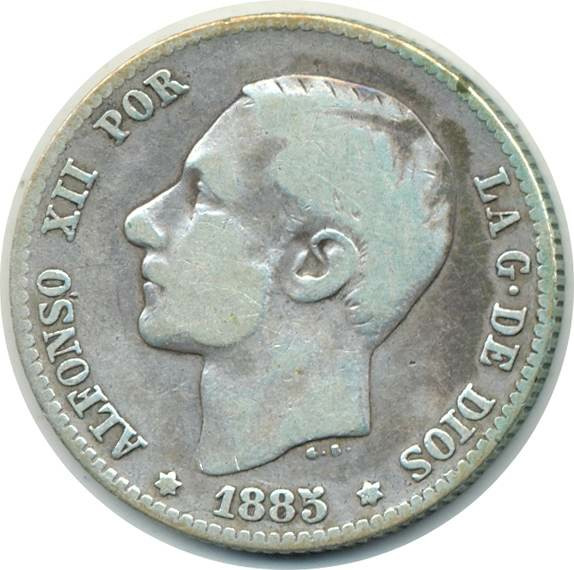 ESPAGNE 1 PESETA 1885 MSM ALFONSO XII TB(W686)