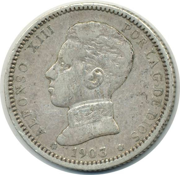 ESPAGNE 1 PESETA 1903 SMV ALFONSO XIII TB+ (W721)
