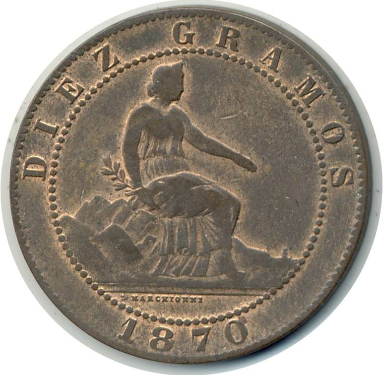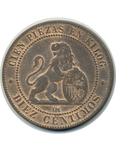 ESPAGNE 10 CENTIMOS 1870 OM TTB+ (W663)