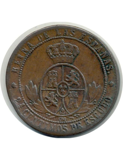 ESPAGNE 2-1/2 CENTIMOS 1867 OM (étoiles 8 pointes) ISABEL II TB+ (W634.1)