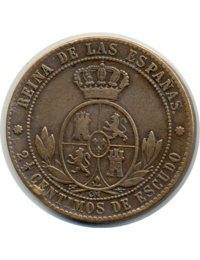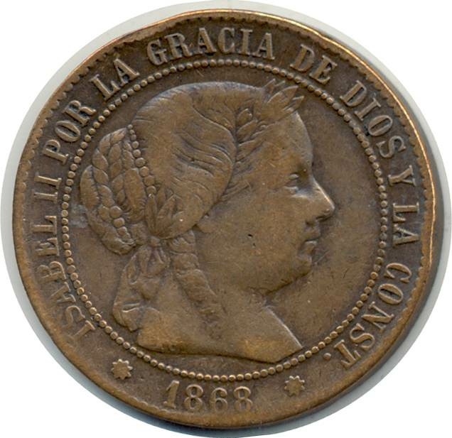 ESPAGNE 2-1/2 CENTIMOS 1868 OM Barcelone (étoiles 8 pointes) ISABEL II TB+ (W634.1)