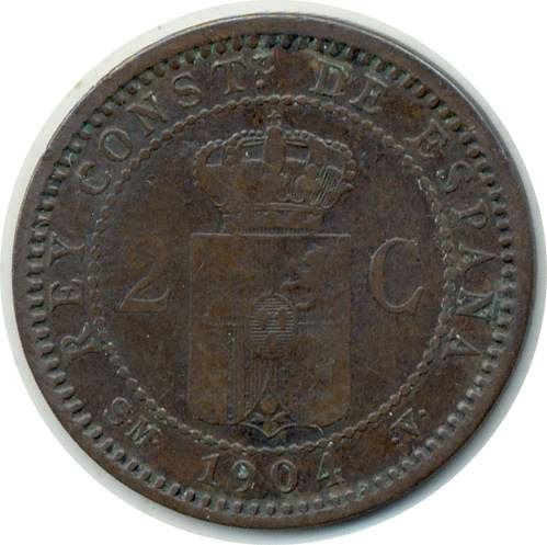 ESPAGNE 2 CENTIMOS 1904 SMV ALFONSO XIII TB+ (W722)