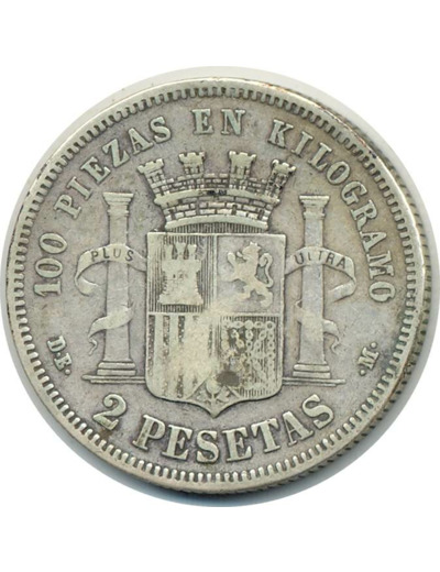 ESPAGNE 2 PESETAS 1870 (73) DEM ESPANA TB (W654) N3