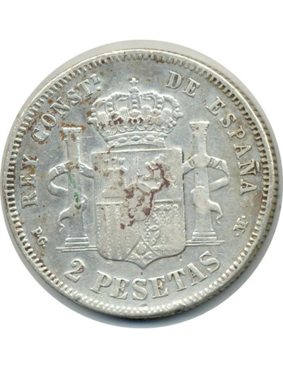 ESPAGNE 2 PESETAS 1892 (92) PGM ALFONSO XIII TB+ (W692)