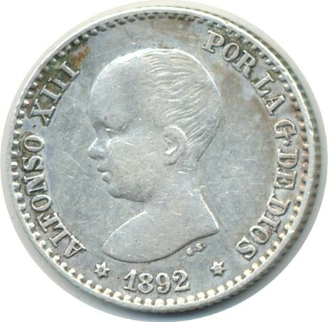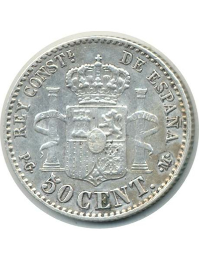 ESPAGNE 50 CENTIMOS 1892 (92) PG.M TTB (W690) N1