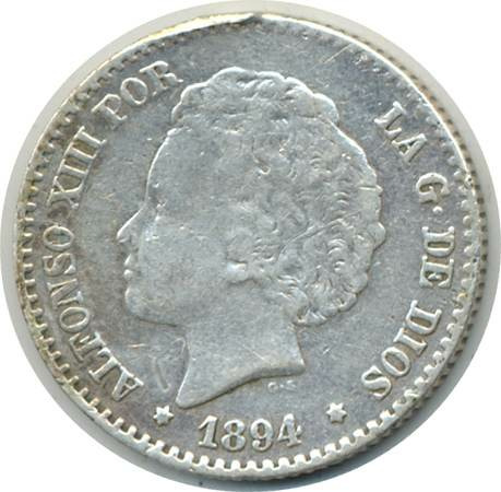 ESPAGNE 50 CENTIMOS 1894 PGV ALFONSO XIII TTB (W703)