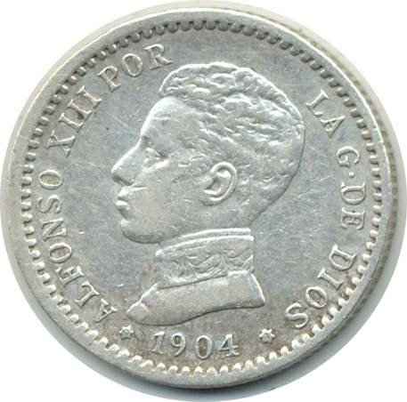 ESPAGNE 50 CENTIMOS 1904 SMV ALFONSO XIII TTB+ (W723)