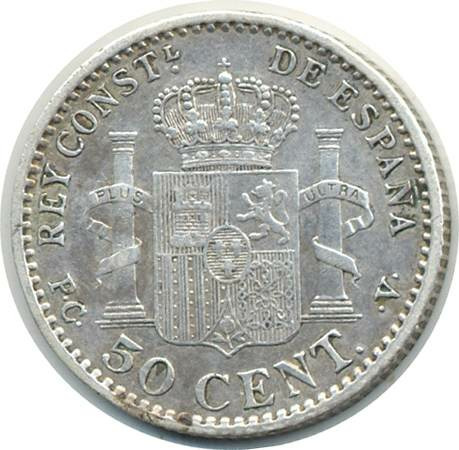 ESPAGNE 50 CENTIMOS 1910 PCV ALFONSO XIII TTB (W730)