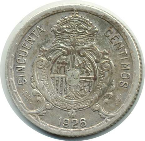 ESPAGNE 50 CENTIMOS 1926 PCS ALFONSO XIII TTB+ (W741)