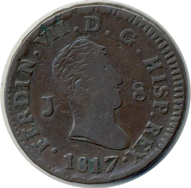 ESPAGNE 8 MARAVEDIS 1817 JUBIA FERDINAND VII TB+ (W461)