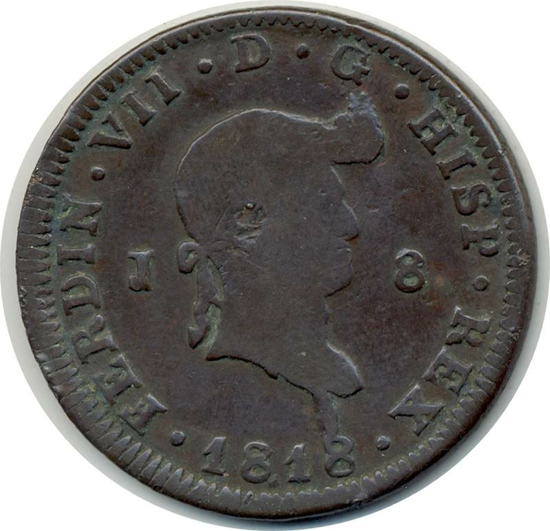 ESPAGNE 8 MARAVEDIS 1818 JA VARIETE FERDINAND VII TB+ (W461)