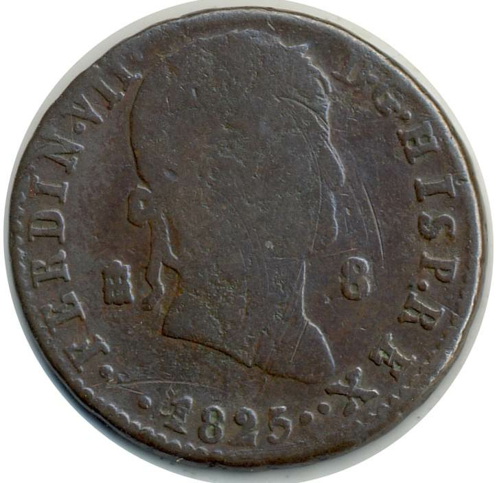 ESPAGNE 8 MARAVEDIS 1825 AQUEDUC FERDINAND VII TB+ (W486.1)