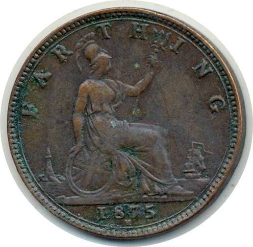 GRANDE BRETAGNE 1 FARTHING 1875 H VICTORIA TTB (W753)