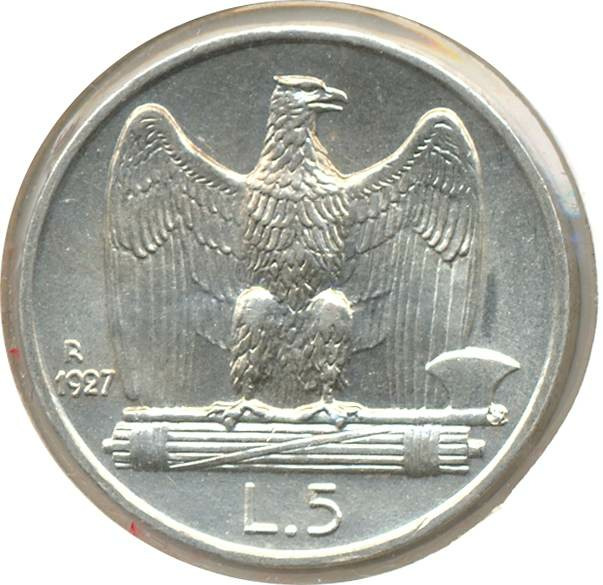 ITALIE 5 LIRE 1927 R SUP/NC (W67.1)