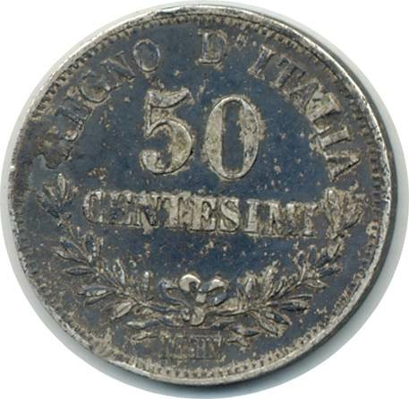ITALIE 50 CENTESIMI 1863 MBN VITTORIO EMANUELE II TTB (W14.1)