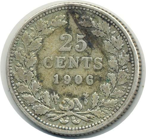 PAYS-BAS 25 CENTS 1906 WILHELMINA I TB+ (W120.2)