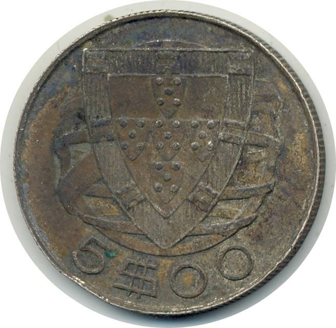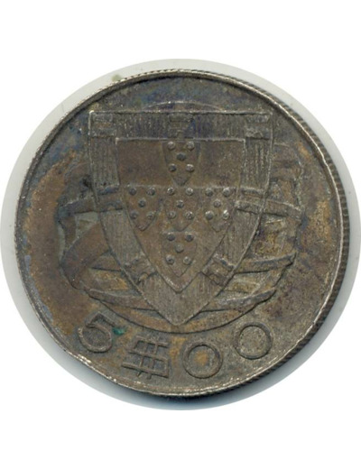 PORTUGAL 5 ESCUDOS 1947 TTB (W581)