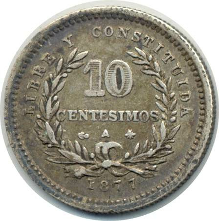 URUGUAY 10 CENTESIMOS 1877 TTB (W14)