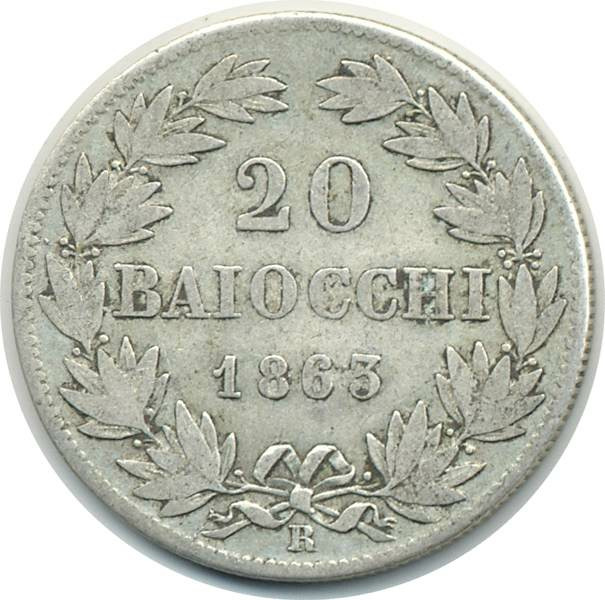 VATICAN 20 BAIOCCHI 1863 R XVIII TB+ (W1386)
