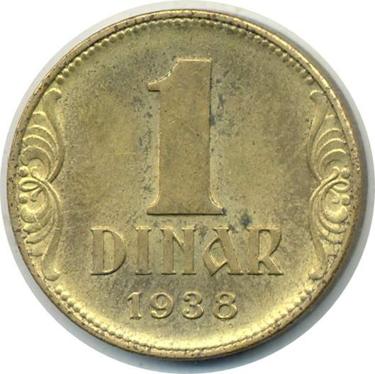 YOUGOSLAVIE 1 DINAR 1938 TTB+ (W19)