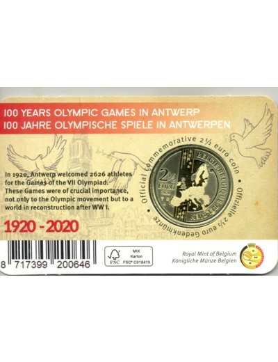BELGIQUE 2020 2.50 EURO100 ANS DES JEUX OLYMPIQUES D ANVERS COINCARD