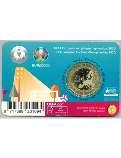 BELGIQUE 2021 2.50 EURO FOOT EURO 2020 VERSION FRANCAISE COINCARD
