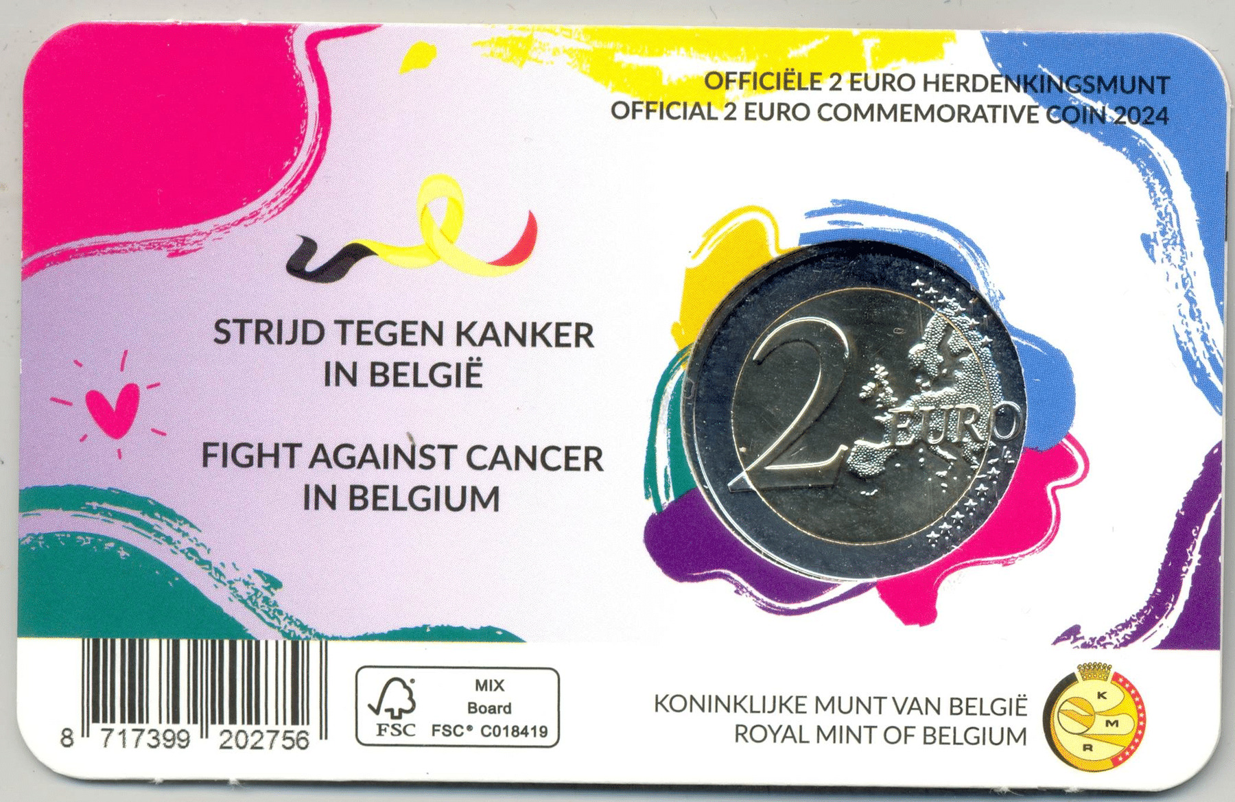 BELGIQUE 2024 2 EURO LUTTE CONTRE LE CANCER COINCARD VERSION FLAMANDE