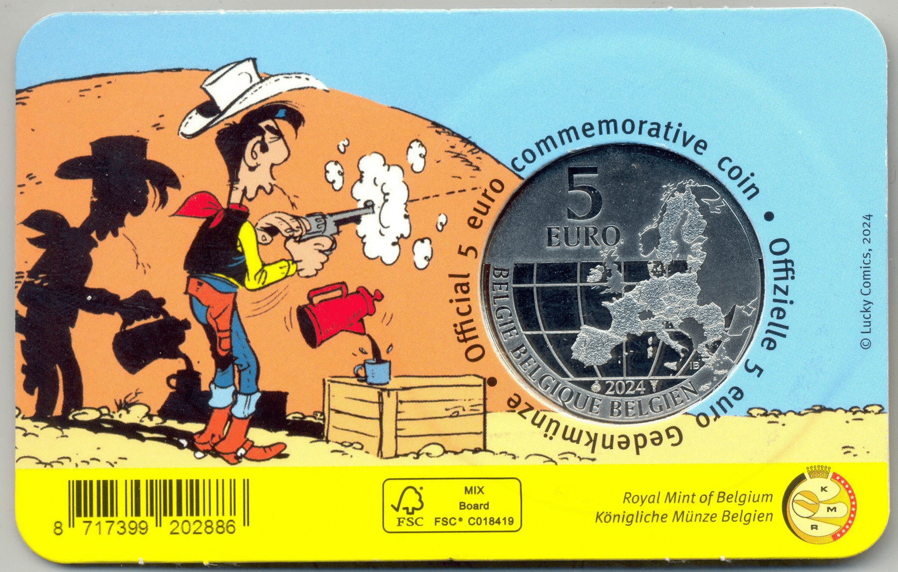 BELGIQUE 2024 5 EURO LUCKY LUKE RELIEF COINCARD