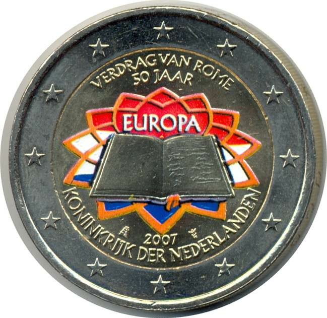 HOLLANDE (PAYS-BAS) 2007 2 EURO COLORISEE TRAITE DE ROME SUP