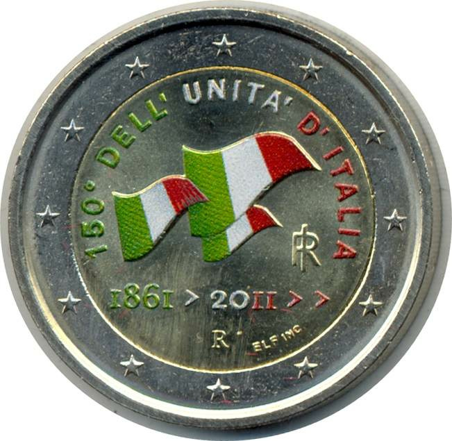 ITALIE 2011 2 EURO COLORISEE 150 ANS DE LA REUNIFICATION SUP