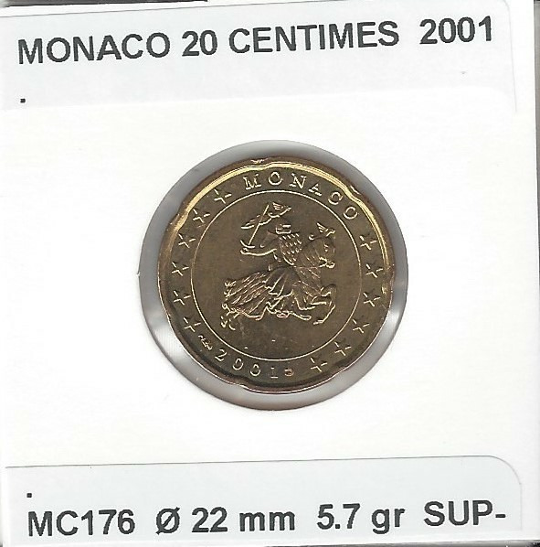 MONACO 2001 20 CENTIMES SUP-