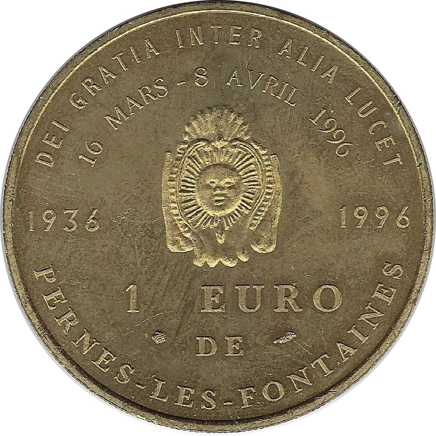 EURO TEMPORAIRE 1 EURO DE PERNES-LES-FONTAINES 1996 UNC