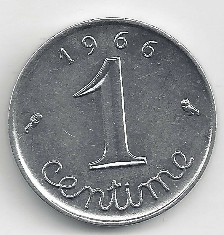 CINQUIEME REPUBLIQUE - 1 CENTIME INOX 1966 AVERS ECRITURE GRASSE SUP