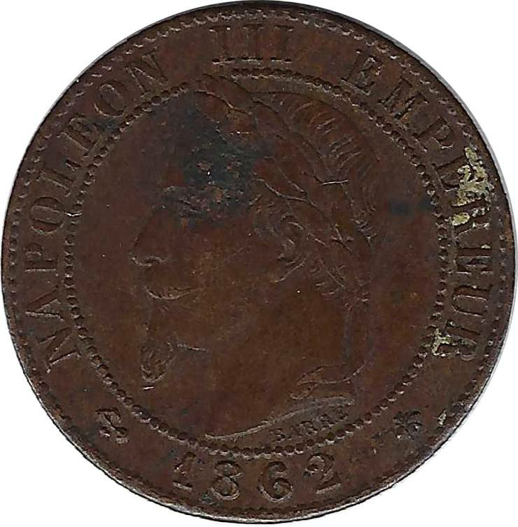 FRANCE 1 CENTIME NAPOLEON III 1862 A (Paris) TTB taches (G87)