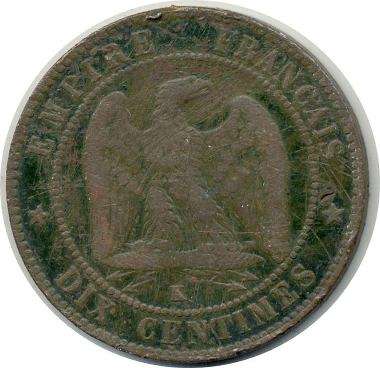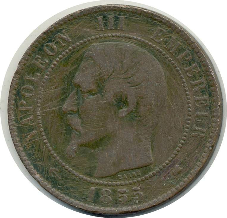 FRANCE 10 CENTIMES NAPOLEON III 1855 K ancre Bordeaux TB+(G248)