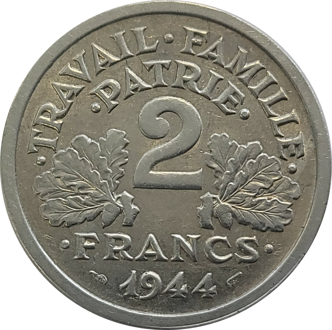 FRANCE 2 FRANCS BAZOR ALUMINIUM 1944 SUP (G536)