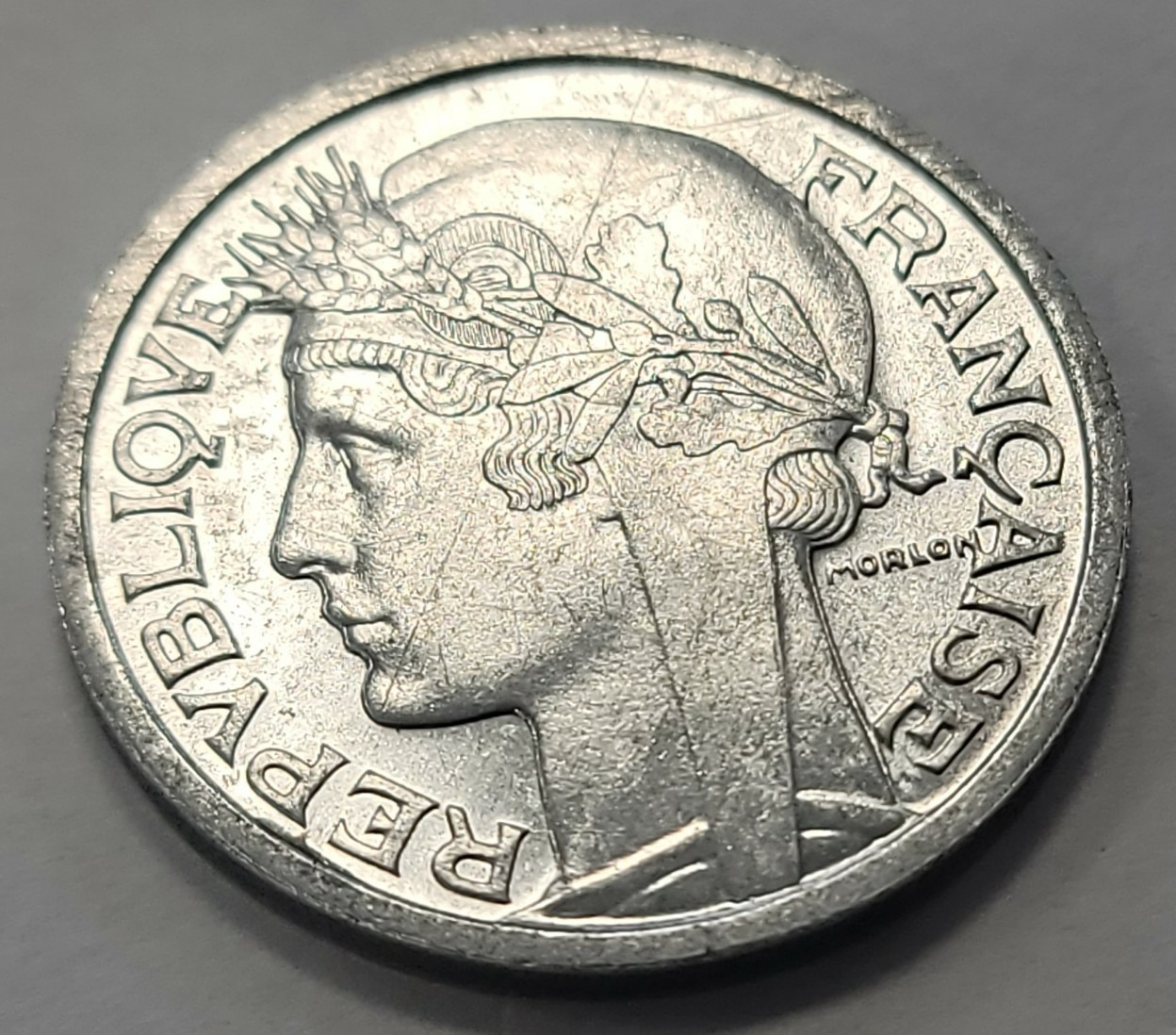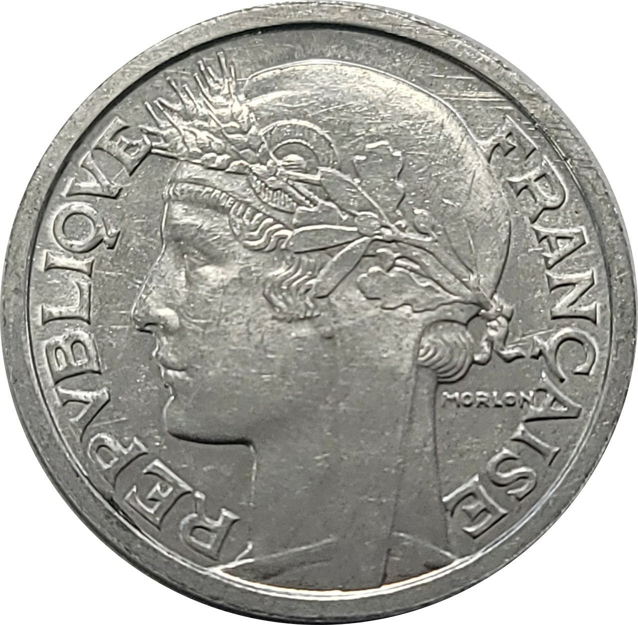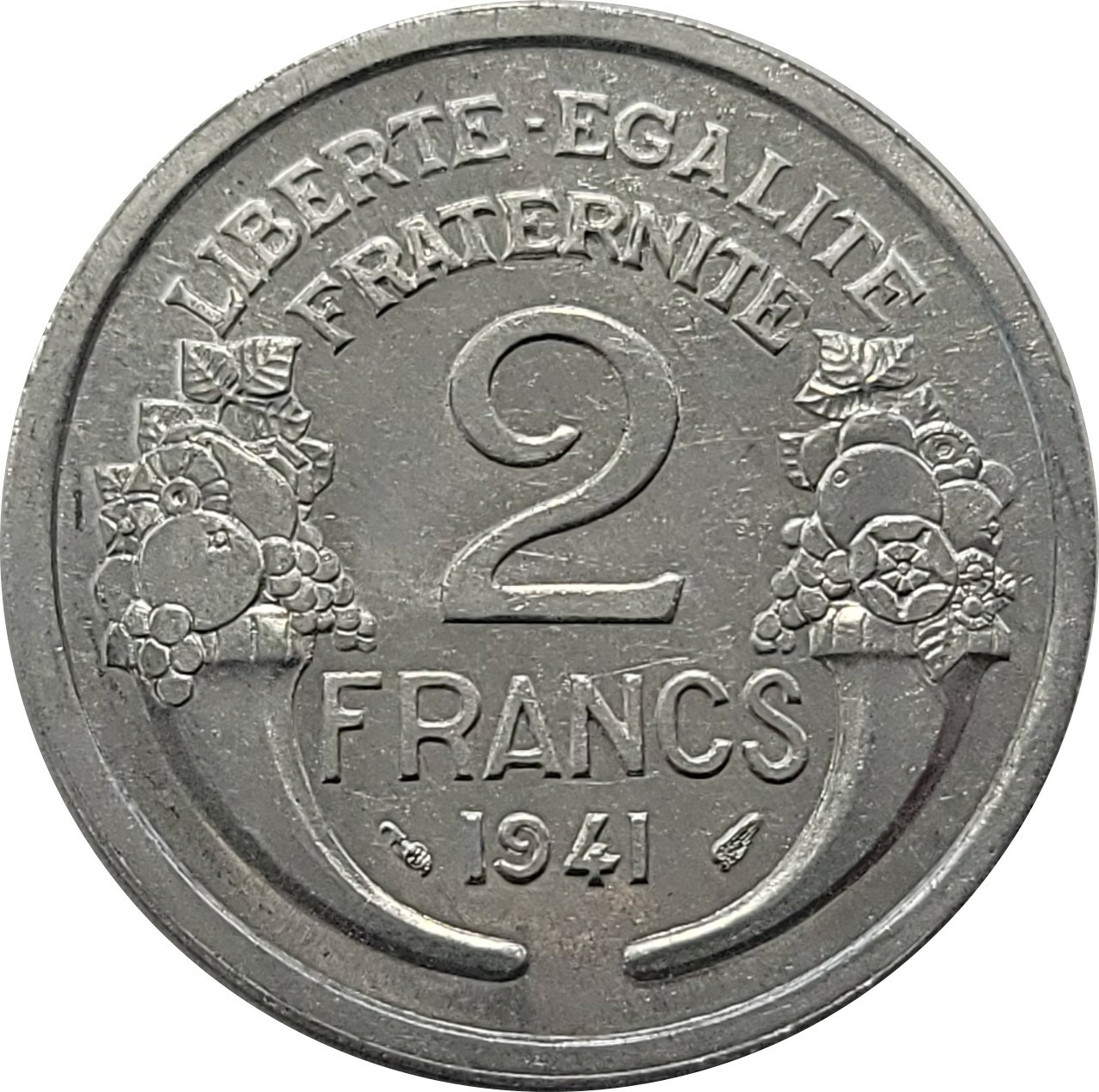 FRANCE 2 FRANCS BAZOR ALUMINIUM 1943 SUP (G536)