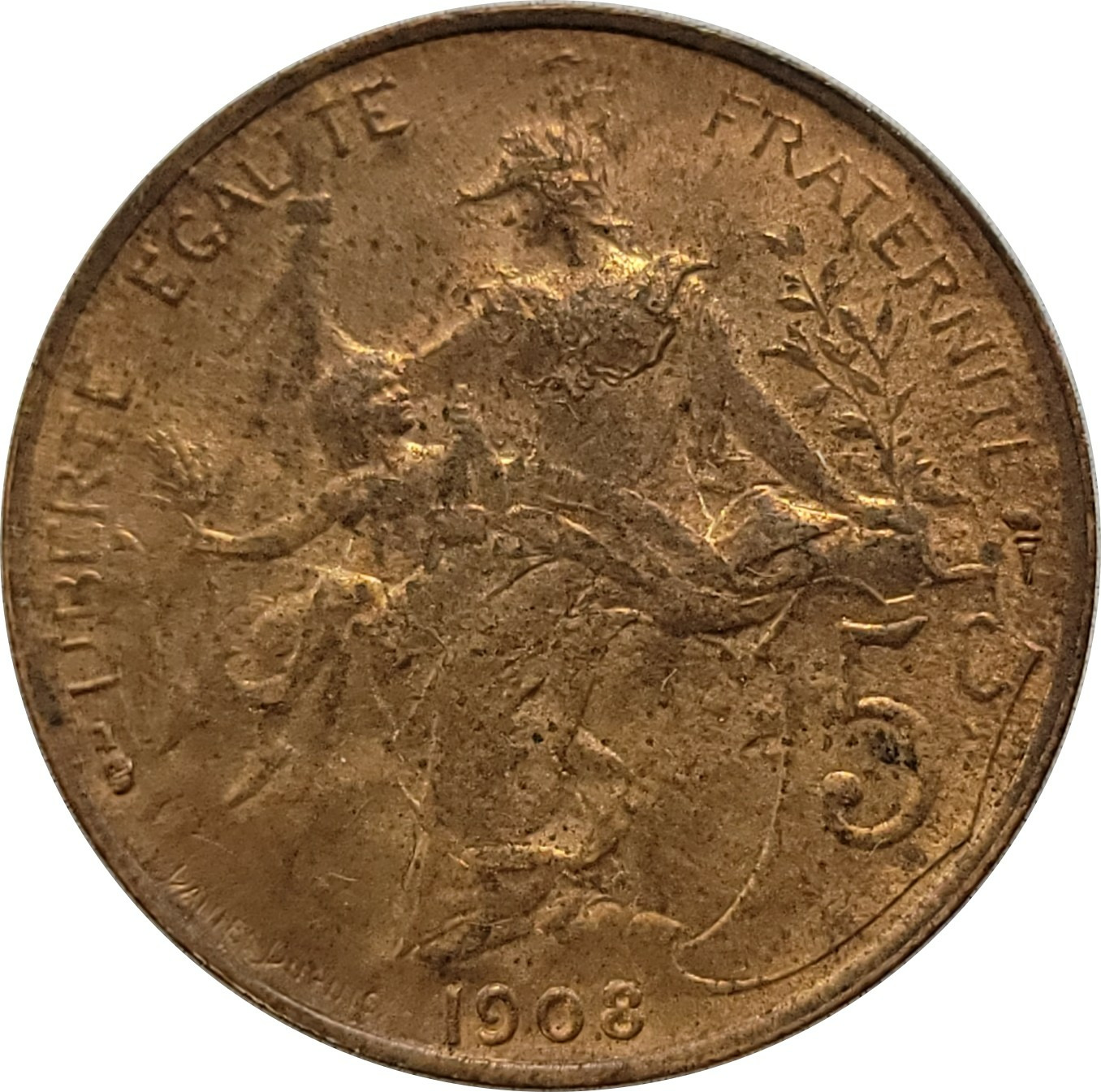 FRANCE 5 CENTIMES DUPUIS 1908 SUP (G165) n1