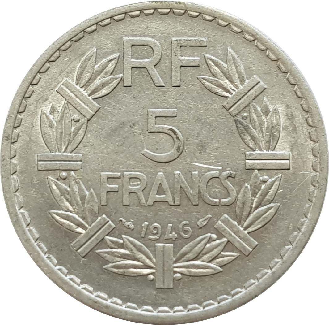 FRANCE 5 FRANCS LAVRILLIER Aluminium 1946 TTB+