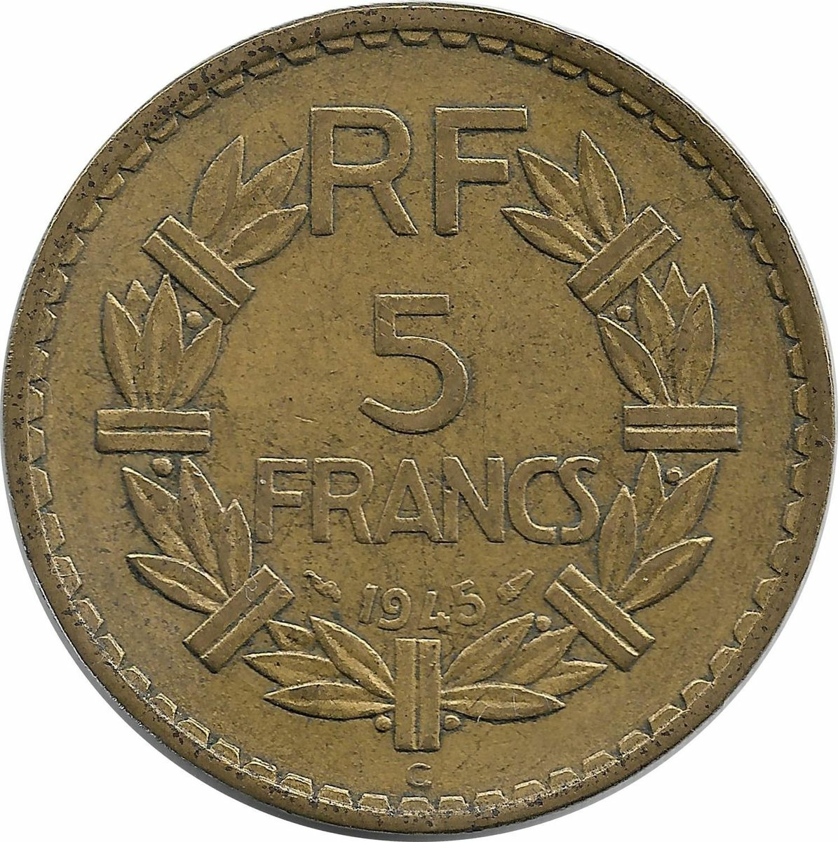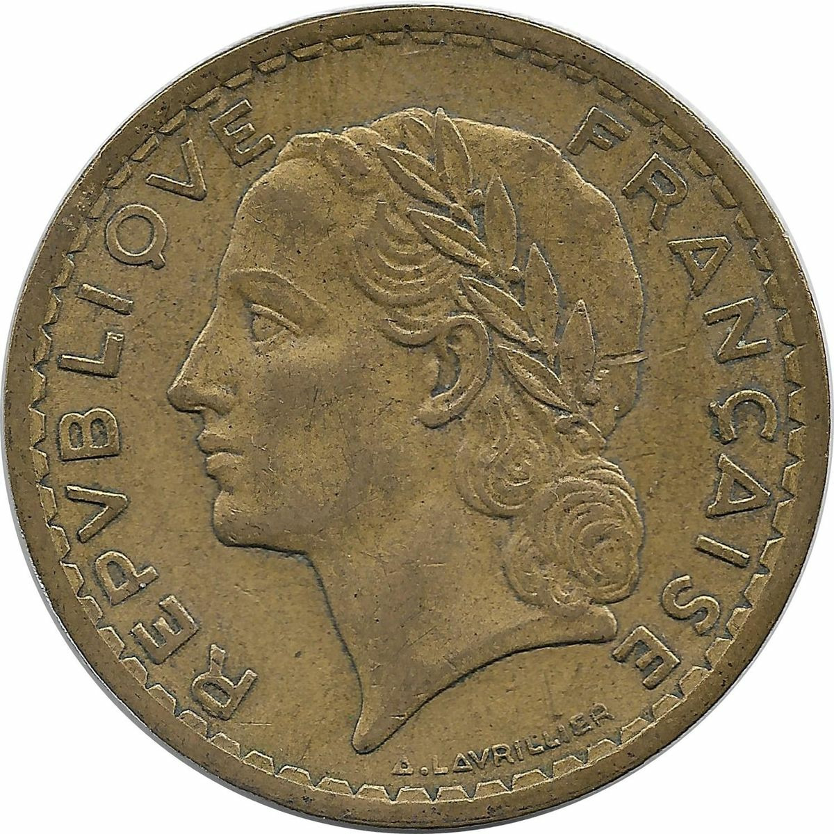 FRANCE 5 FRANCS LAVRILLIER CUPRO ALU 1945 C TTB