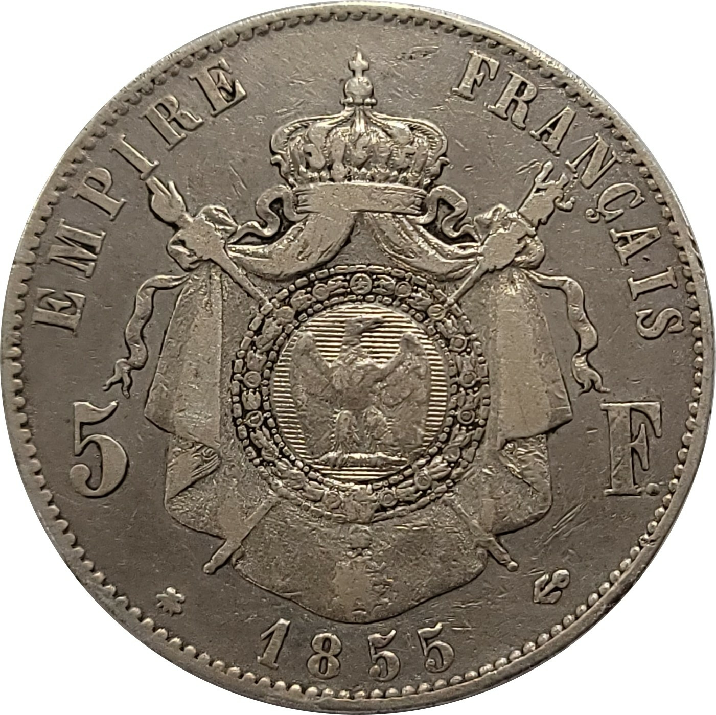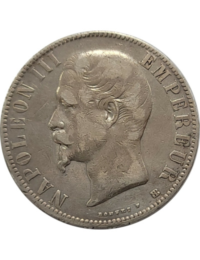 FRANCE 5 FRANCS NAPOLEON III 1855 BB