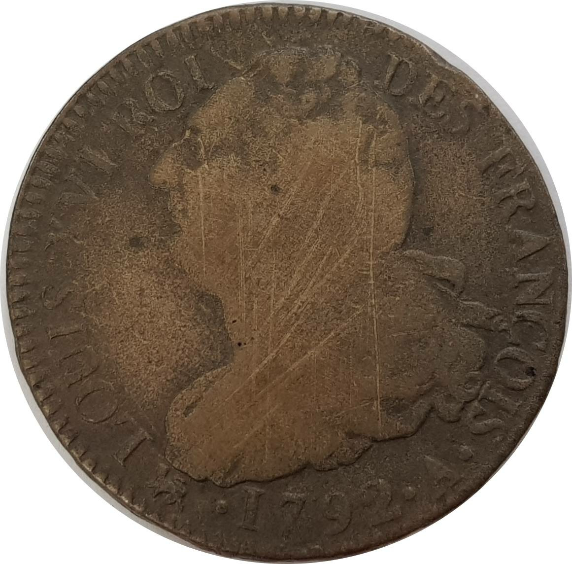 FRANCE LOUIS XVI 2 SOLS FRANÇOIS 1792 A (Paris) AN 4 TB