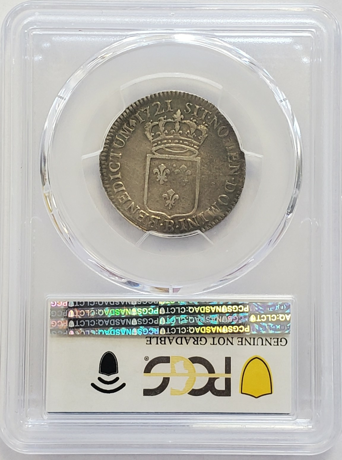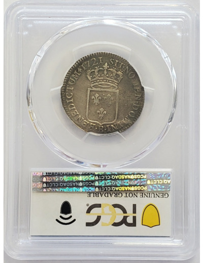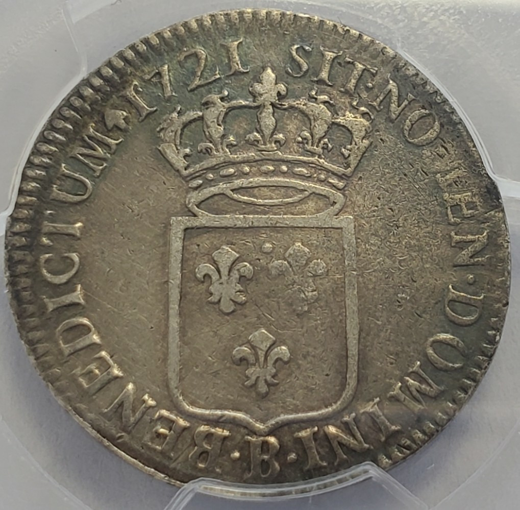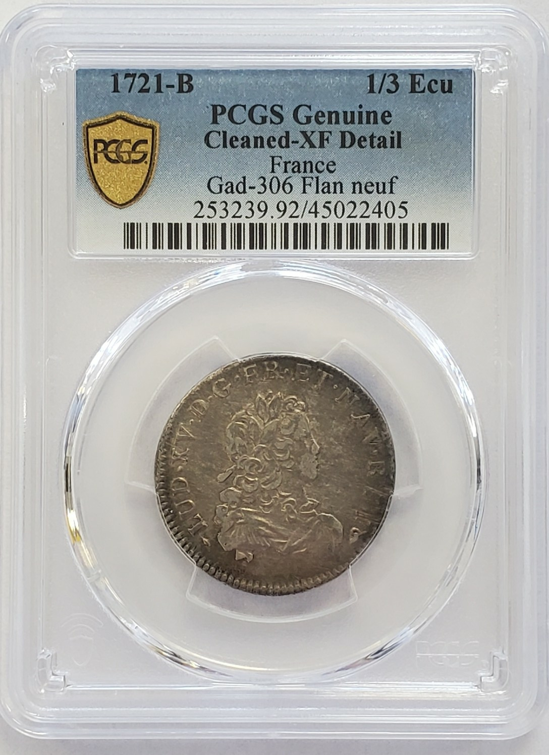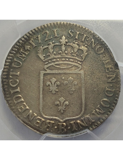 LOUIS XV (1715-1774) 1/3 ECU DE FRANCE 1721 B (Rouen) PCGS XF-DETAIL
