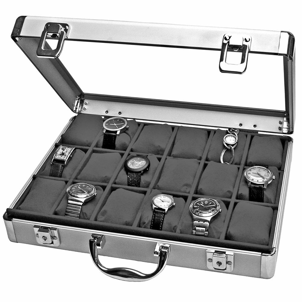 Avec 18 coussins recouverts de velours pour attacher les montres.