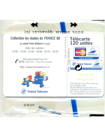 TELECARTE NSB 120 UNITES 06/98 LENS STADE FELIX BOLLAERT F 874